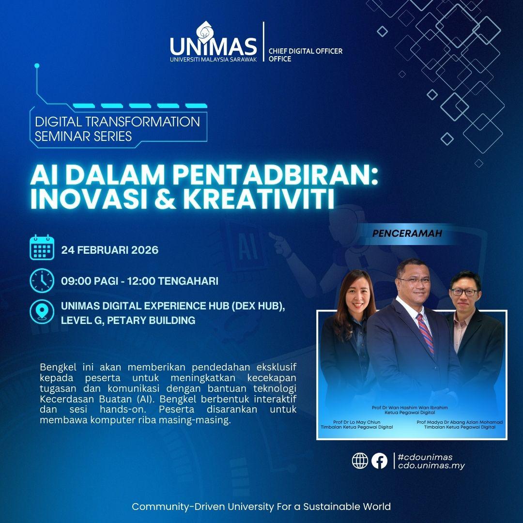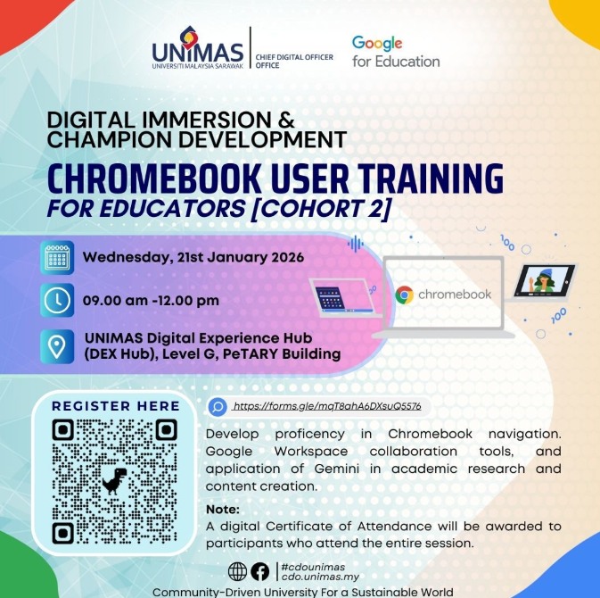 Empowering digital literacy and digital potential to accelerate the professional growth of all UNIMAS staff and students, creating a digitally fluent, future-ready academic community.